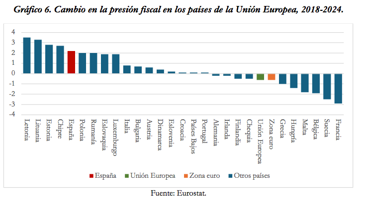 España registra el 5º mayor incremento del esfuerzo fiscal directo sobre los hogares (2018- 2024), mientras la media europea lo reduce. Francia, Suecia o Alemania alivian impuestos; España los endurece.